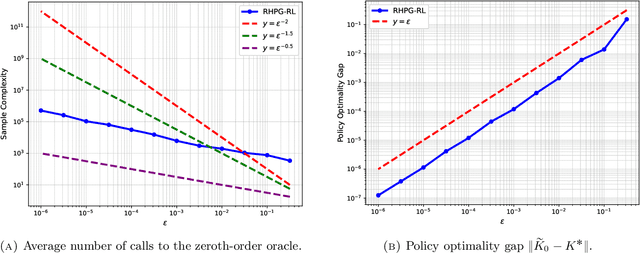 Abstract:We provide the first known algorithm that provably achieves $\varepsilon$-optimality within $\widetilde{\mathcal{O}}(1/\varepsilon)$ function evaluations for the discounted discrete-time LQR problem with unknown parameters, without relying on two-point gradient estimates. These estimates are known to be unrealistic in many settings, as they depend on using the exact same initialization, which is to be selected randomly, for two different policies. Our results substantially improve upon the existing literature outside the realm of two-point gradient estimates, which either leads to $\widetilde{\mathcal{O}}(1/\varepsilon^2)$ rates or heavily relies on stability assumptions.