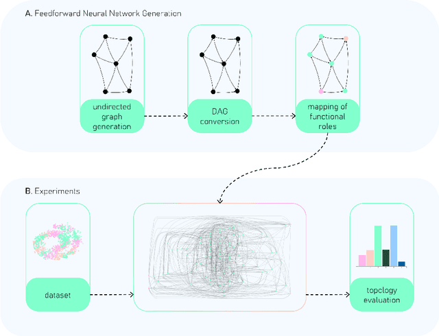 Abstract:Thanks to their ease of implementation, multilayer perceptrons (MLPs) have become ubiquitous in deep learning applications. The graph underlying an MLP is indeed multipartite, i.e. each layer of neurons only connects to neurons belonging to the adjacent layer. In constrast, in vivo brain connectomes at the level of individual synapses suggest that biological neuronal networks are characterized by scale-free degree distributions or exponentially truncated power law strength distributions, hinting at potentially novel avenues for the exploitation of evolution-derived neuronal networks. In this paper, we present "4Ward", a method and Python library capable of generating flexible and efficient neural networks (NNs) from arbitrarily complex directed acyclic graphs. 4Ward is inspired by layering algorithms drawn from the graph drawing discipline to implement efficient forward passes, and provides significant time gains in computational experiments with various Erd\H{o}s-R\'enyi graphs. 4Ward overcomes the sequential nature of the learning matrix method by parallelizing the computation of activations and provides the designer with freedom to customize weight initialization and activation functions. Our algorithm can be of aid for any investigator seeking to exploit complex topologies in a NN design framework at the microscale.