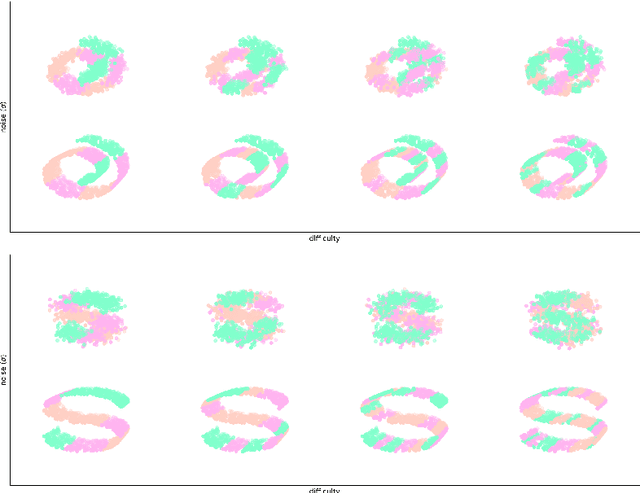 Abstract:The lack of large labeled medical imaging datasets, along with significant inter-individual variability compared to clinically established disease classes, poses significant challenges in exploiting medical imaging information in a precision medicine paradigm, where in principle dense patient-specific data can be employed to formulate individual predictions and/or stratify patients into finer-grained groups which may follow more homogeneous trajectories and therefore empower clinical trials. In order to efficiently explore the effective degrees of freedom underlying variability in medical images in an unsupervised manner, in this work we propose an unsupervised autoencoder framework which is augmented with a contrastive loss to encourage high separability in the latent space. The model is validated on (medical) benchmark datasets. As cluster labels are assigned to each example according to cluster assignments, we compare performance with a supervised transfer learning baseline. Our method achieves similar performance to the supervised architecture, indicating that separation in the latent space reproduces expert medical observer-assigned labels. The proposed method could be beneficial for patient stratification, exploring new subdivisions of larger classes or pathological continua or, due to its sampling abilities in a variation setting, data augmentation in medical image processing.