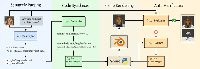 Abstract:SmartAvatar is a vision-language-agent-driven framework for generating fully rigged, animation-ready 3D human avatars from a single photo or textual prompt. While diffusion-based methods have made progress in general 3D object generation, they continue to struggle with precise control over human identity, body shape, and animation readiness. In contrast, SmartAvatar leverages the commonsense reasoning capabilities of large vision-language models (VLMs) in combination with off-the-shelf parametric human generators to deliver high-quality, customizable avatars. A key innovation is an autonomous verification loop, where the agent renders draft avatars, evaluates facial similarity, anatomical plausibility, and prompt alignment, and iteratively adjusts generation parameters for convergence. This interactive, AI-guided refinement process promotes fine-grained control over both facial and body features, enabling users to iteratively refine their avatars via natural-language conversations. Unlike diffusion models that rely on static pre-trained datasets and offer limited flexibility, SmartAvatar brings users into the modeling loop and ensures continuous improvement through an LLM-driven procedural generation and verification system. The generated avatars are fully rigged and support pose manipulation with consistent identity and appearance, making them suitable for downstream animation and interactive applications. Quantitative benchmarks and user studies demonstrate that SmartAvatar outperforms recent text- and image-driven avatar generation systems in terms of reconstructed mesh quality, identity fidelity, attribute accuracy, and animation readiness, making it a versatile tool for realistic, customizable avatar creation on consumer-grade hardware.