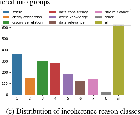 Abstract:Coherence is a linguistic term that refers to the relations between small textual units (sentences, propositions), which make the text logically consistent and meaningful to the reader. With the advances of generative foundational models in NLP, there is a pressing need to automatically assess the human-perceived coherence of automatically generated texts. Up until now, little work has been done on explicitly assessing the coherence of generated texts and analyzing the factors contributing to (in)coherence. Previous work on the topic used other tasks, e.g., sentence reordering, as proxies of coherence, rather than approaching coherence detection heads on. In this paper, we introduce {\sc CoheSentia}, a novel benchmark of human-perceived coherence of automatically generated texts. Our annotation protocol reflects two perspectives; one is global, assigning a single coherence score, and the other is incremental, scoring sentence by sentence. The incremental method produces an (in)coherence score for each text fragment and also pinpoints reasons for incoherence at that point. Our benchmark contains 500 automatically-generated and human-annotated paragraphs, each annotated in both methods, by multiple raters. Our analysis shows that the inter-annotator agreement in the incremental mode is higher than in the holistic alternative, and our experiments show that standard LMs fine-tuned for coherence detection show varied performance on the different factors contributing to (in)coherence. All in all, these models yield unsatisfactory performance, emphasizing the need for developing more reliable methods for coherence assessment.