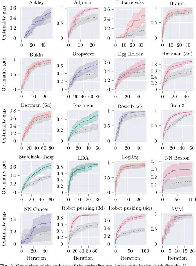 Abstract:Unconstrained global optimisation aims to optimise expensive-to-evaluate black-box functions without gradient information. Bayesian optimisation, one of the most well-known techniques, typically employs Gaussian processes as surrogate models, leveraging their probabilistic nature to balance exploration and exploitation. However, Gaussian processes become computationally prohibitive in high-dimensional spaces. Recent alternatives, based on inverse distance weighting (IDW) and radial basis functions (RBFs), offer competitive, computationally lighter solutions. Despite their efficiency, both traditional global and Bayesian optimisation strategies suffer from the myopic nature of their acquisition functions, which focus solely on immediate improvement neglecting future implications of the sequential decision making process. Nonmyopic acquisition functions devised for the Bayesian setting have shown promise in improving long-term performance. Yet, their use in deterministic strategies with IDW and RBF remains unexplored. In this work, we introduce novel nonmyopic acquisition strategies tailored to IDW- and RBF-based global optimisation. Specifically, we develop dynamic programming-based paradigms, including rollout and multi-step scenario-based optimisation schemes, to enable lookahead acquisition. These methods optimise a sequence of query points over a horizon (instead of only at the next step) by predicting the evolution of the surrogate model, inherently managing the exploration-exploitation trade-off in a systematic way via optimisation techniques. The proposed approach represents a significant advance in extending nonmyopic acquisition principles, previously confined to Bayesian optimisation, to the deterministic framework. Empirical results on synthetic and hyperparameter tuning benchmark problems demonstrate that these nonmyopic methods outperform conventional myopic approaches.