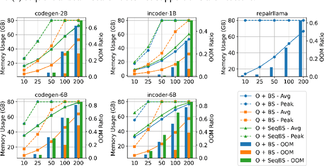 Abstract:In this paper, we first show that increases in beam size of even just small-sized LLM (1B-7B parameters) require an extensive GPU resource consumption, leading to up to 80% of recurring crashes due to memory overloads in LLM-based APR. Seemingly simple solutions to reduce memory consumption are (1) to quantize LLM models, i.e., converting the weights of a LLM from high-precision values to lower-precision ones. and (2) to make beam search sequential, i.e., forwarding each beam through the model sequentially and then concatenate them back into a single model output. However, we show that these approaches still do not work via both theoretical analysis and experiments. To address this, we introduce FLAMES, a novel LLM-based APR technique that employs semantic-guided patch generation to enhance repair effectiveness and memory efficiency. Unlike conventional methods that rely on beam search, FLAMES utilizes greedy decoding to enhance memory efficiency while steering the search to more potentially good repair candidates via a semantic-guided best-first search algorithm. At each decoding step, FLAMES uses semantic feedback from test validation such as the number of passing and failing test cases to select the most promising token to explore further. Our empirical evaluation on the Defects4J and HumanEval-Java datasets shows that FLAMES not only substantially reduces memory consumption by up to 83% compared to conventional LLM-based APR, but also accelerates the repair process. Remarkably, FLAMES successfully generated 133 and 103 correct fixes for 333 and 163 bugs in the Defects4J and HumanEval-Java datasets, respectively. This suggests that FLAMES is not only more efficient but also outperforms state-of-the-art techniques, fixing at least 10 and 11 more bugs than SOTA baselines in the Defects4J and HumanEval-Java datasets, respectively.