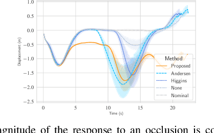 Abstract:Visibility is a crucial aspect of planning and control of autonomous vehicles (AV), particularly when navigating environments with occlusions. However, when an AV follows a trajectory with multiple occlusions, existing methods evaluate each occlusion individually, calculate a visibility cost for each, and rely on the planner to minimize the overall cost. This can result in conflicting priorities for the planner, as individual occlusion costs may appear to be in opposition. We solve this problem by creating an alternate perspective cost map that allows for an aggregate view of the occlusions in the environment. The value of each cell on the cost map is a measure of the amount of visual information that the vehicle can gain about the environment by visiting that location. Our proposed method identifies observation locations and occlusion targets drawn from both map data and sensor data. We show how to estimate an alternate perspective for each observation location and then combine all estimates into a single alternate perspective cost map for motion planning.