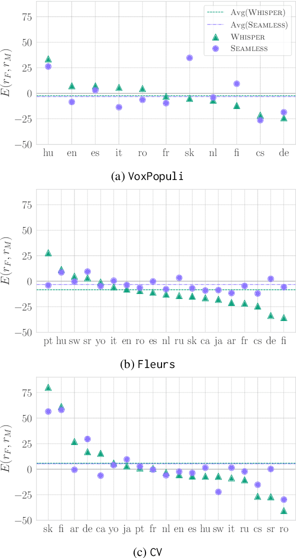 Abstract:Current voice recognition approaches use multi-task, multilingual models for speech tasks like Automatic Speech Recognition (ASR) to make them applicable to many languages without substantial changes. However, broad language coverage can still mask performance gaps within languages, for example, across genders. We systematically evaluate multilingual ASR systems on gendered performance gaps. Using two popular models on three datasets in 19 languages across seven language families, we find clear gender disparities. However, the advantaged group varies between languages. While there are no significant differences across groups in phonetic variables (pitch, speaking rate, etc.), probing the model's internal states reveals a negative correlation between probe performance and the gendered performance gap. I.e., the easier to distinguish speaker gender in a language, the more the models favor female speakers. Our results show that group disparities remain unsolved despite great progress on multi-tasking and multilinguality. We provide first valuable insights for evaluating gender gaps in multilingual ASR systems. We release all code and artifacts at https://github.com/g8a9/multilingual-asr-gender-gap.