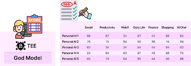 Abstract:Personal AI assistants (e.g., Apple Intelligence, Meta AI) offer proactive recommendations that simplify everyday tasks, but their reliance on sensitive user data raises concerns about privacy and trust. To address these challenges, we introduce the Guardian of Data (GOD), a secure, privacy-preserving framework for training and evaluating AI assistants directly on-device. Unlike traditional benchmarks, the GOD model measures how well assistants can anticipate user needs-such as suggesting gifts-while protecting user data and autonomy. Functioning like an AI school, it addresses the cold start problem by simulating user queries and employing a curriculum-based approach to refine the performance of each assistant. Running within a Trusted Execution Environment (TEE), it safeguards user data while applying reinforcement and imitation learning to refine AI recommendations. A token-based incentive system encourages users to share data securely, creating a data flywheel that drives continuous improvement. By integrating privacy, personalization, and trust, the GOD model provides a scalable, responsible path for advancing personal AI assistants. For community collaboration, part of the framework is open-sourced at https://github.com/PIN-AI/God-Model.