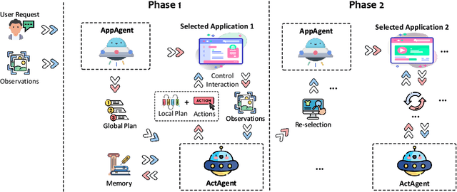 Abstract:We introduce UFO, an innovative UI-Focused agent to fulfill user requests tailored to applications on Windows OS, harnessing the capabilities of GPT-Vision. UFO employs a dual-agent framework to meticulously observe and analyze the graphical user interface (GUI) and control information of Windows applications. This enables the agent to seamlessly navigate and operate within individual applications and across them to fulfill user requests, even when spanning multiple applications. The framework incorporates a control interaction module, facilitating action grounding without human intervention and enabling fully automated execution. Consequently, UFO transforms arduous and time-consuming processes into simple tasks achievable solely through natural language commands. We conducted testing of UFO across 9 popular Windows applications, encompassing a variety of scenarios reflective of users' daily usage. The results, derived from both quantitative metrics and real-case studies, underscore the superior effectiveness of UFO in fulfilling user requests. To the best of our knowledge, UFO stands as the first UI agent specifically tailored for task completion within the Windows OS environment. The open-source code for UFO is available on https://github.com/microsoft/UFO.