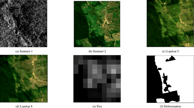 Abstract:The Multimodal Learning for Earth and Environment Workshop (MultiEarth 2023) is the second annual CVPR workshop aimed at the monitoring and analysis of the health of Earth ecosystems by leveraging the vast amount of remote sensing data that is continuously being collected. The primary objective of this workshop is to bring together the Earth and environmental science communities as well as the multimodal representation learning communities to explore new ways of harnessing technological advancements in support of environmental monitoring. The MultiEarth Workshop also seeks to provide a common benchmark for processing multimodal remote sensing information by organizing public challenges focused on monitoring the Amazon rainforest. These challenges include estimating deforestation, detecting forest fires, translating synthetic aperture radar (SAR) images to the visible domain, and projecting environmental trends. This paper presents the challenge guidelines, datasets, and evaluation metrics. Our challenge website is available at https://sites.google.com/view/rainforest-challenge/multiearth-2023.