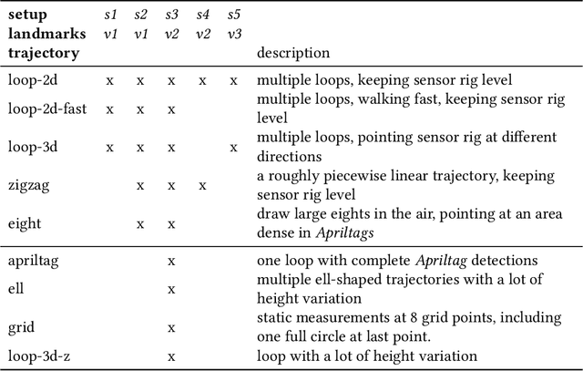 Abstract:This document contains a detailed description of the STAR-loc dataset. For a quick starting guide please refer to the associated Github repository (https://github.com/utiasASRL/starloc). The dataset consists of stereo camera data (rectified/raw images and inertial measurement unit measurements) and ultra-wideband (UWB) data (range measurements) collected on a sensor rig in a Vicon motion capture arena. The UWB anchors and visual landmarks (Apriltags) are of known position, so the dataset can be used for both localization and Simultaneous Localization and Mapping (SLAM).