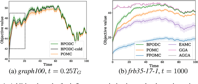 Abstract:Subset selection with cost constraints aims to select a subset from a ground set to maximize a monotone objective function without exceeding a given budget, which has various applications such as influence maximization and maximum coverage. In real-world scenarios, the budget, representing available resources, may change over time, which requires that algorithms must adapt quickly to new budgets. However, in this dynamic environment, previous algorithms either lack theoretical guarantees or require a long running time. The state-of-the-art algorithm, POMC, is a Pareto optimization approach designed for static problems, lacking consideration for dynamic problems. In this paper, we propose BPODC, enhancing POMC with biased selection and warm-up strategies tailored for dynamic environments. We focus on the ability of BPODC to leverage existing computational results while adapting to budget changes. We prove that BPODC can maintain the best known $(\alpha_f/2)(1-e^{-\alpha_f})$-approximation guarantee when the budget changes. Experiments on influence maximization and maximum coverage show that BPODC adapts more effectively and rapidly to budget changes, with a running time that is less than that of the static greedy algorithm.