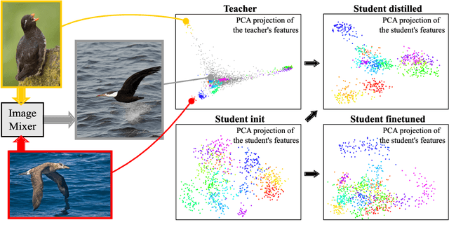 Abstract:Large pretrained visual models exhibit remarkable generalization across diverse recognition tasks. Yet, real-world applications often demand compact models tailored to specific problems. Variants of knowledge distillation have been devised for such a purpose, enabling task-specific compact models (the students) to learn from a generic large pretrained one (the teacher). In this paper, we show that the excellent robustness and versatility of recent pretrained models challenge common practices established in the literature, calling for a new set of optimal guidelines for task-specific distillation. To address the lack of samples in downstream tasks, we also show that a variant of Mixup based on stable diffusion complements standard data augmentation. This strategy eliminates the need for engineered text prompts and improves distillation of generic models into streamlined specialized networks.