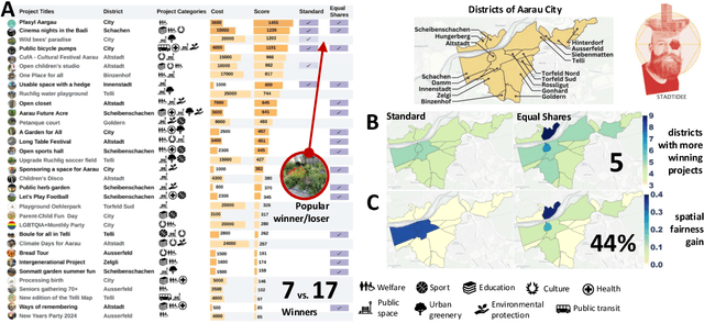 Abstract:Voting methods are instrumental design element of democracies. Citizens use them to express and aggregate their preferences to reach a collective decision. However, voting outcomes can be as sensitive to voting rules as they are to people's voting choices. Despite the significance and inter-disciplinary scientific progress on voting methods, several democracies keep relying on outdated voting methods that do not fit modern, pluralistic societies well, while lacking social innovation. Here, we demonstrate how one can upgrade real-world democracies, namely by using alternative preferential voting methods such as cumulative voting and the method of equal shares designed for a proportional representation of voters' preferences. By rigorously assessing a new participatory budgeting approach applied in the city of Aarau, Switzerland, we unravel the striking voting outcomes of fair voting methods: more winning projects with the same budget and broader geographic and preference representation of citizens by the elected projects, in particular for voters who used to be under-represented, while promoting novel project ideas. We provide profound causal evidence showing that citizens prefer proportional voting methods, which possess strong legitimacy without the need of very technical specialized explanations. We also reveal strong underlying democratic values exhibited by citizens who support fair voting methods such as altruism and compromise. These findings come with a global momentum to unleash a new and long-awaited participation blueprint of how to upgrade democracies.