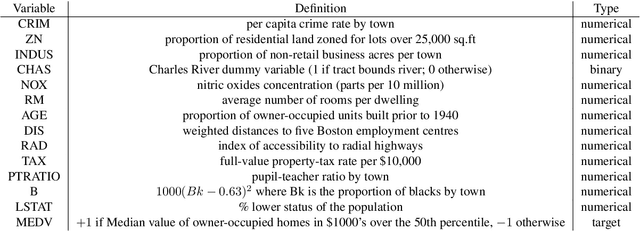 Abstract:Classification and Regression Trees (CARTs) are off-the-shelf techniques in modern Statistics and Machine Learning. CARTs are traditionally built by means of a greedy procedure, sequentially deciding the splitting predictor variable(s) and the associated threshold. This greedy approach trains trees very fast, but, by its nature, their classification accuracy may not be competitive against other state-of-the-art procedures. Moreover, controlling critical issues, such as the misclassification rates in each of the classes, is difficult. To address these shortcomings, optimal decision trees have been recently proposed in the literature, which use discrete decision variables to model the path each observation will follow in the tree. Instead, we propose a new approach based on continuous optimization. Our classifier can be seen as a randomized tree, since at each node of the decision tree a random decision is made. The computational experience reported demonstrates the good performance of our procedure.