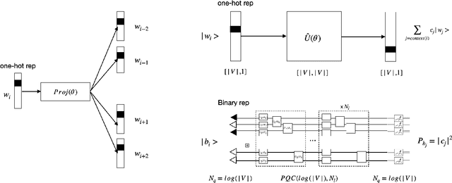 Abstract:We present a variety of methods for training complex-valued word embeddings, based on the classical Skip-gram model, with a straightforward adaptation simply replacing the real-valued vectors with arbitrary vectors of complex numbers. In a more "physically-inspired" approach, the vectors are produced by parameterised quantum circuits (PQCs), which are unitary transformations resulting in normalised vectors which have a probabilistic interpretation. We develop a complex-valued version of the highly optimised C code version of Skip-gram, which allows us to easily produce complex embeddings trained on a 3.8B-word corpus for a vocabulary size of over 400k, for which we are then able to train a separate PQC for each word. We evaluate the complex embeddings on a set of standard similarity and relatedness datasets, for some models obtaining results competitive with the classical baseline. We find that, while training the PQCs directly tends to harm performance, the quantum word embeddings from the two-stage process perform as well as the classical Skip-gram embeddings with comparable numbers of parameters. This enables a highly scalable route to learning embeddings in complex spaces which scales with the size of the vocabulary rather than the size of the training corpus. In summary, we demonstrate how to produce a large set of high-quality word embeddings for use in complex-valued and quantum-inspired NLP models, and for exploring potential advantage in quantum NLP models.