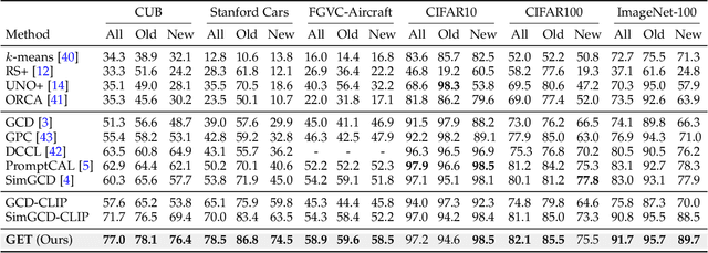 Abstract:Given unlabelled datasets containing both old and new categories, generalized category discovery (GCD) aims to accurately discover new classes while correctly classifying old classes, leveraging the class concepts learned from labeled samples. Current GCD methods only use a single visual modality of information, resulting in poor classification of visually similar classes. Though certain classes are visually confused, their text information might be distinct, motivating us to introduce text information into the GCD task. However, the lack of class names for unlabelled data makes it impractical to utilize text information. To tackle this challenging problem, in this paper, we propose a Text Embedding Synthesizer (TES) to generate pseudo text embeddings for unlabelled samples. Specifically, our TES leverages the property that CLIP can generate aligned vision-language features, converting visual embeddings into tokens of the CLIP's text encoder to generate pseudo text embeddings. Besides, we employ a dual-branch framework, through the joint learning and instance consistency of different modality branches, visual and semantic information mutually enhance each other, promoting the interaction and fusion of visual and text embedding space. Our method unlocks the multi-modal potentials of CLIP and outperforms the baseline methods by a large margin on all GCD benchmarks, achieving new state-of-the-art. The code will be released at \url{https://github.com/enguangW/GET}.