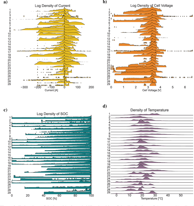 Abstract:Health monitoring, fault analysis, and detection are critical for the safe and sustainable operation of battery systems. We apply Gaussian process resistance models on lithium iron phosphate battery field data to effectively separate the time-dependent and operating point-dependent resistance. The data set contains 29 battery systems returned to the manufacturer for warranty, each with eight cells in series, totaling 232 cells and 131 million data rows. We develop probabilistic fault detection rules using recursive spatiotemporal Gaussian processes. These processes allow the quick processing of over a million data points, enabling advanced online monitoring and furthering the understanding of battery pack failure in the field. The analysis underlines that often, only a single cell shows abnormal behavior or a knee point, consistent with weakest-link failure for cells connected in series, amplified by local resistive heating. The results further the understanding of how batteries degrade and fail in the field and demonstrate the potential of efficient online monitoring based on data. We open-source the code and publish the large data set upon completion of the review of this article.