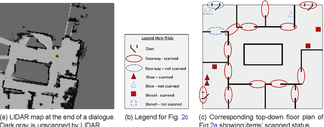 Abstract:We introduce the Situated Corpus Of Understanding Transactions (SCOUT), a multi-modal collection of human-robot dialogue in the task domain of collaborative exploration. The corpus was constructed from multiple Wizard-of-Oz experiments where human participants gave verbal instructions to a remotely-located robot to move and gather information about its surroundings. SCOUT contains 89,056 utterances and 310,095 words from 278 dialogues averaging 320 utterances per dialogue. The dialogues are aligned with the multi-modal data streams available during the experiments: 5,785 images and 30 maps. The corpus has been annotated with Abstract Meaning Representation and Dialogue-AMR to identify the speaker's intent and meaning within an utterance, and with Transactional Units and Relations to track relationships between utterances to reveal patterns of the Dialogue Structure. We describe how the corpus and its annotations have been used to develop autonomous human-robot systems and enable research in open questions of how humans speak to robots. We release this corpus to accelerate progress in autonomous, situated, human-robot dialogue, especially in the context of navigation tasks where details about the environment need to be discovered.