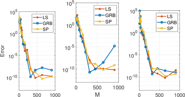 Abstract:In the present paper, we consider one-hidden layer ANNs with a feedforward architecture, also referred to as shallow or two-layer networks, so that the structure is determined by the number and types of neurons. The determination of the parameters that define the function, called training, is done via the resolution of the approximation problem, so by imposing the interpolation through a set of specific nodes. We present the case where the parameters are trained using a procedure that is referred to as Extreme Learning Machine (ELM) that leads to a linear interpolation problem. In such hypotheses, the existence of an ANN interpolating function is guaranteed. The focus is then on the accuracy of the interpolation outside of the given sampling interpolation nodes when they are the equispaced, the Chebychev, and the randomly selected ones. The study is motivated by the well-known bell-shaped Runge example, which makes it clear that the construction of a global interpolating polynomial is accurate only if trained on suitably chosen nodes, ad example the Chebychev ones. In order to evaluate the behavior when growing the number of interpolation nodes, we raise the number of neurons in our network and compare it with the interpolating polynomial. We test using Runge's function and other well-known examples with different regularities. As expected, the accuracy of the approximation with a global polynomial increases only if the Chebychev nodes are considered. Instead, the error for the ANN interpolating function always decays and in most cases we observe that the convergence follows what is observed in the polynomial case on Chebychev nodes, despite the set of nodes used for training.
