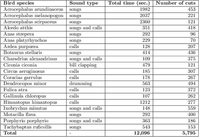 Abstract:This study investigates the potential of automated deep learning to enhance the accuracy and efficiency of multi-class classification of bird vocalizations, compared against traditional manually-designed deep learning models. Using the Western Mediterranean Wetland Birds dataset, we investigated the use of AutoKeras, an automated machine learning framework, to automate neural architecture search and hyperparameter tuning. Comparative analysis validates our hypothesis that the AutoKeras-derived model consistently outperforms traditional models like MobileNet, ResNet50 and VGG16. Our approach and findings underscore the transformative potential of automated deep learning for advancing bioacoustics research and models. In fact, the automated techniques eliminate the need for manual feature engineering and model design while improving performance. This study illuminates best practices in sampling, evaluation and reporting to enhance reproducibility in this nascent field. All the code used is available at https: //github.com/giuliotosato/AutoKeras-bioacustic Keywords: AutoKeras; automated deep learning; audio classification; Wetlands Bird dataset; comparative analysis; bioacoustics; validation dataset; multi-class classification; spectrograms.