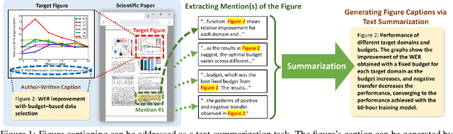 Abstract:Effective figure captions are crucial for clear comprehension of scientific figures, yet poor caption writing remains a common issue in scientific articles. Our study of arXiv cs.CL papers found that 53.88% of captions were rated as unhelpful or worse by domain experts, showing the need for better caption generation. Previous efforts in figure caption generation treated it as a vision task, aimed at creating a model to understand visual content and complex contextual information. Our findings, however, demonstrate that over 75% of figure captions' tokens align with corresponding figure-mentioning paragraphs, indicating great potential for language technology to solve this task. In this paper, we present a novel approach for generating figure captions in scientific documents using text summarization techniques. Our approach extracts sentences referencing the target figure, then summarizes them into a concise caption. In the experiments on real-world arXiv papers (81.2% were published at academic conferences), our method, using only text data, outperformed previous approaches in both automatic and human evaluations. We further conducted data-driven investigations into the two core challenges: (i) low-quality author-written captions and (ii) the absence of a standard for good captions. We found that our models could generate improved captions for figures with original captions rated as unhelpful, and the model trained on captions with more than 30 tokens produced higher-quality captions. We also found that good captions often include the high-level takeaway of the figure. Our work proves the effectiveness of text summarization in generating figure captions for scholarly articles, outperforming prior vision-based approaches. Our findings have practical implications for future figure captioning systems, improving scientific communication clarity.
