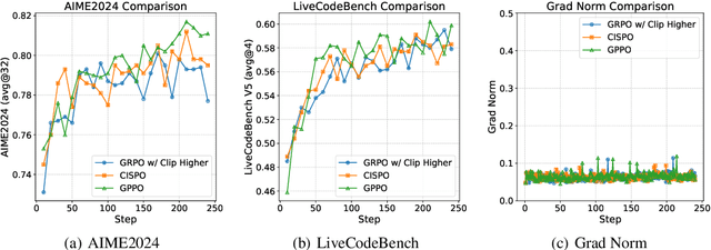 Abstract:We present Klear-Reasoner, a model with long reasoning capabilities that demonstrates careful deliberation during problem solving, achieving outstanding performance across multiple benchmarks. Although there are already many excellent works related to inference models in the current community, there are still many problems with reproducing high-performance inference models due to incomplete disclosure of training details. This report provides an in-depth analysis of the reasoning model, covering the entire post-training workflow from data preparation and long Chain-of-Thought supervised fine-tuning (long CoT SFT) to reinforcement learning (RL), along with detailed ablation studies for each experimental component. For SFT data, our experiments show that a small number of high-quality data sources are more effective than a large number of diverse data sources, and that difficult samples can achieve better results without accuracy filtering. In addition, we investigate two key issues with current clipping mechanisms in RL: Clipping suppresses critical exploration signals and ignores suboptimal trajectories. To address these challenges, we propose Gradient-Preserving clipping Policy Optimization (GPPO) that gently backpropagates gradients from clipped tokens. GPPO not only enhances the model's exploration capacity but also improves its efficiency in learning from negative samples. Klear-Reasoner exhibits exceptional reasoning abilities in mathematics and programming, scoring 90.5% on AIME 2024, 83.2% on AIME 2025, 66.0% on LiveCodeBench V5 and 58.1% on LiveCodeBench V6.