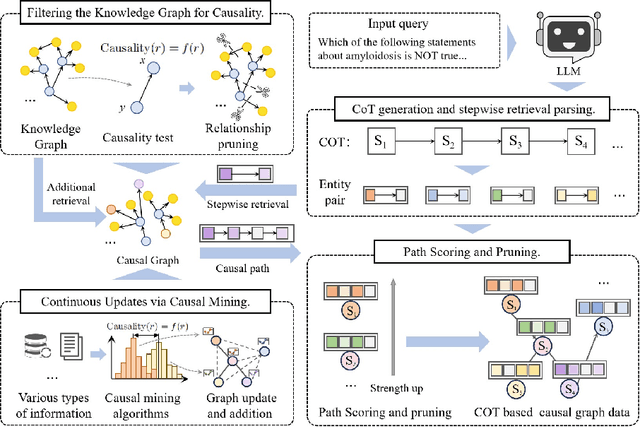 Abstract:In knowledge-intensive tasks, especially in high-stakes domains like medicine and law, it is critical not only to retrieve relevant information but also to provide causal reasoning and explainability. Large language models (LLMs) have achieved remarkable performance in natural language understanding and generation tasks. However, they often suffer from limitations such as difficulty in incorporating new knowledge, generating hallucinations, and explaining their reasoning process. To address these challenges, integrating knowledge graphs with Graph Retrieval-Augmented Generation (Graph RAG) has emerged as an effective solution. Traditional Graph RAG methods often rely on simple graph traversal or semantic similarity, which do not capture causal relationships or align well with the model's internal reasoning steps. This paper proposes a novel pipeline that filters large knowledge graphs to emphasize cause-effect edges, aligns the retrieval process with the model's chain-of-thought (CoT), and enhances reasoning through multi-stage path improvements. Experiments on medical question-answering tasks show consistent gains, with up to a 10\% absolute improvement across multiple large language models (LLMs). This approach demonstrates the value of combining causal reasoning with stepwise retrieval, leading to more interpretable and logically grounded solutions for complex queries.