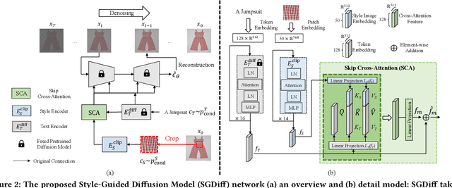 Abstract:This paper reports on the development of \textbf{a novel style guided diffusion model (SGDiff)} which overcomes certain weaknesses inherent in existing models for image synthesis. The proposed SGDiff combines image modality with a pretrained text-to-image diffusion model to facilitate creative fashion image synthesis. It addresses the limitations of text-to-image diffusion models by incorporating supplementary style guidance, substantially reducing training costs, and overcoming the difficulties of controlling synthesized styles with text-only inputs. This paper also introduces a new dataset -- SG-Fashion, specifically designed for fashion image synthesis applications, offering high-resolution images and an extensive range of garment categories. By means of comprehensive ablation study, we examine the application of classifier-free guidance to a variety of conditions and validate the effectiveness of the proposed model for generating fashion images of the desired categories, product attributes, and styles. The contributions of this paper include a novel classifier-free guidance method for multi-modal feature fusion, a comprehensive dataset for fashion image synthesis application, a thorough investigation on conditioned text-to-image synthesis, and valuable insights for future research in the text-to-image synthesis domain. The code and dataset are available at: \url{https://github.com/taited/SGDiff}.