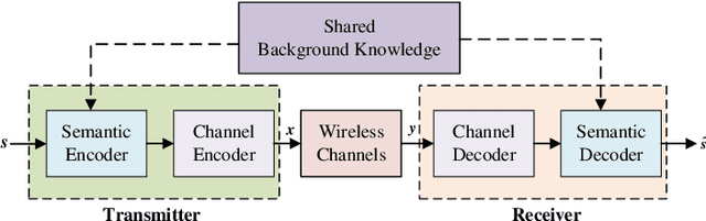 Abstract:Digital and analog semantic communications (SemCom) face inherent limitations such as data security concerns in analog SemCom, as well as leveling-off and cliff-edge effects in digital SemCom. In order to overcome these challenges, we propose a novel SemCom framework and a corresponding system called HDA-DeepSC, which leverages a hybrid digital-analog approach for multimedia transmission. This is achieved through the introduction of digital-analog allocation and fusion modules. To strike a balance between data rate and distortion, we design new loss functions that take into account long-distance dependencies in the semantic distortion constraint, essential information recovery in the channel distortion constraint, and optimal bit stream generation in the rate constraint. Additionally, we propose denoising diffusion-based signal detection techniques, which involve carefully designed variance schedules and sampling algorithms to refine transmitted signals. Through extensive numerical experiments, we will demonstrate that HDA-DeepSC exhibits robustness to channel variations and is capable of supporting various communication scenarios. Our proposed framework outperforms existing benchmarks in terms of peak signal-to-noise ratio and multi-scale structural similarity, showcasing its superiority in semantic communication quality.