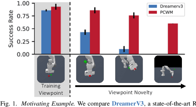 Abstract:Visual control policies can encounter significant performance degradation when visual conditions like lighting or camera position differ from those seen during training -- often exhibiting sharp declines in capability even for minor differences. In this work, we examine robustness to a suite of these types of visual changes for RGB-D and point cloud based visual control policies. To perform these experiments on both model-free and model-based reinforcement learners, we introduce a novel Point Cloud World Model (PCWM) and point cloud based control policies. Our experiments show that policies that explicitly encode point clouds are significantly more robust than their RGB-D counterparts. Further, we find our proposed PCWM significantly outperforms prior works in terms of sample efficiency during training. Taken together, these results suggest reasoning about the 3D scene through point clouds can improve performance, reduce learning time, and increase robustness for robotic learners. Project Webpage: https://pvskand.github.io/projects/PCWM