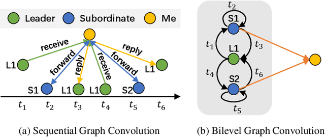 Abstract:Researchers of temporal networks (e.g., social networks and transaction networks) have been interested in mining dynamic patterns of nodes from their diverse interactions. Inspired by recently powerful graph mining methods like skip-gram models and Graph Neural Networks (GNNs), existing approaches focus on generating temporal node embeddings sequentially with nodes' sequential interactions. However, the sequential modeling of previous approaches cannot handle the transition structure between nodes' neighbors with limited memorization capacity. Detailedly, an effective method for the transition structures is required to both model nodes' personalized patterns adaptively and capture node dynamics accordingly. In this paper, we propose a method, namely Transition Propagation Graph Neural Networks (TIP-GNN), to tackle the challenges of encoding nodes' transition structures. The proposed TIP-GNN focuses on the bilevel graph structure in temporal networks: besides the explicit interaction graph, a node's sequential interactions can also be constructed as a transition graph. Based on the bilevel graph, TIP-GNN further encodes transition structures by multi-step transition propagation and distills information from neighborhoods by a bilevel graph convolution. Experimental results over various temporal networks reveal the efficiency of our TIP-GNN, with at most 7.2\% improvements of accuracy on temporal link prediction. Extensive ablation studies further verify the effectiveness and limitations of the transition propagation module. Our code is available at \url{https://github.com/doujiang-zheng/TIP-GNN}.