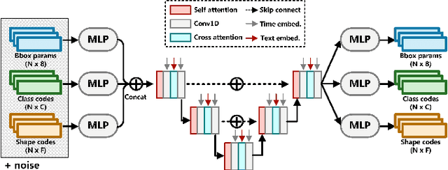 Abstract:We present DiffuScene for indoor 3D scene synthesis based on a novel scene graph denoising diffusion probabilistic model, which generates 3D instance properties stored in a fully-connected scene graph and then retrieves the most similar object geometry for each graph node i.e. object instance which is characterized as a concatenation of different attributes, including location, size, orientation, semantic, and geometry features. Based on this scene graph, we designed a diffusion model to determine the placements and types of 3D instances. Our method can facilitate many downstream applications, including scene completion, scene arrangement, and text-conditioned scene synthesis. Experiments on the 3D-FRONT dataset show that our method can synthesize more physically plausible and diverse indoor scenes than state-of-the-art methods. Extensive ablation studies verify the effectiveness of our design choice in scene diffusion models.