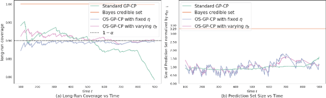 Abstract:The Gaussian process (GP) is a Bayesian nonparametric paradigm that is widely adopted for uncertainty quantification (UQ) in a number of safety-critical applications, including robotics, healthcare, as well as surveillance. The consistency of the resulting uncertainty values however, hinges on the premise that the learning function conforms to the properties specified by the GP model, such as smoothness, periodicity and more, which may not be satisfied in practice, especially with data arriving on the fly. To combat against such model mis-specification, we propose to wed the GP with the prevailing conformal prediction (CP), a distribution-free post-processing framework that produces it prediction sets with a provably valid coverage under the sole assumption of data exchangeability. However, this assumption is usually violated in the online setting, where a prediction set is sought before revealing the true label. To ensure long-term coverage guarantee, we will adaptively set the key threshold parameter based on the feedback whether the true label falls inside the prediction set. Numerical results demonstrate the merits of the online GP-CP approach relative to existing alternatives in the long-term coverage performance.