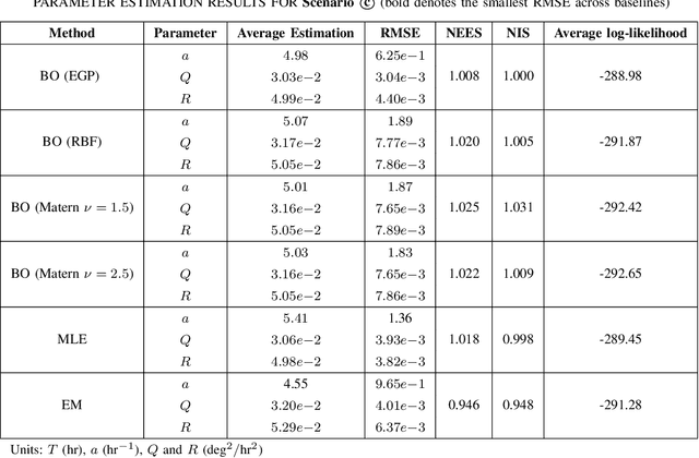 Abstract:This paper deals with the identification of the stochastic Ornstein-Uhlenbeck (OU) process error model, which is characterized by an inverse time constant, and the unknown variances of the process and observation noises. Although the availability of the explicit expression of the log-likelihood function allows one to obtain the maximum likelihood estimator (MLE), this entails evaluating the nontrivial gradient and also often struggles with local optima. To address these limitations, we put forth a sample-efficient global optimization approach based on the Bayesian optimization (BO) framework, which relies on a Gaussian process (GP) surrogate model for the objective function that effectively balances exploration and exploitation to select the query points. Specifically, each evaluation of the objective is implemented efficiently through the Kalman filter (KF) recursion. Comprehensive experiments on various parameter settings and sampling intervals corroborate that BO-based estimator consistently outperforms MLE implemented by the steady-state KF approximation and the expectation-maximization algorithm (whose derivation is a side contribution) in terms of root mean-square error (RMSE) and statistical consistency, confirming the effectiveness and robustness of the BO for identification of the stochastic OU process. Notably, the RMSE values produced by the BO-based estimator are smaller than the classical Cram\'{e}r-Rao lower bound, especially for the inverse time constant, estimating which has been a long-standing challenge. This seemingly counterintuitive result can be explained by the data-driven prior for the learning parameters indirectly injected by BO through the GP prior over the objective function.