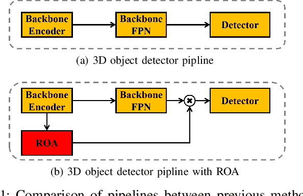 Abstract:Vision-based BEV (Bird-Eye-View) 3D object detection has recently become popular in autonomous driving. However, objects with a high similarity to the background from a camera perspective cannot be detected well by existing methods. In this paper, we propose 2D Region-oriented Attention for a BEV-based 3D Object Detection Network (ROA-BEV), which can make the backbone focus more on feature learning in areas where objects may exist. Moreover, our method increases the information content of ROA through a multi-scale structure. In addition, every block of ROA utilizes a large kernel to ensure that the receptive field is large enough to catch large objects' information. Experiments on nuScenes show that ROA-BEV improves the performance based on BEVDet and BEVDepth. The code will be released soon.