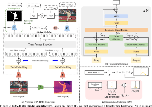 Abstract:Precise Human Mesh Recovery (HMR) with in-the-wild data is a formidable challenge and is often hindered by depth ambiguities and reduced precision. Existing works resort to either pose priors or multi-modal data such as multi-view or point cloud information, though their methods often overlook the valuable scene-depth information inherently present in a single image. Moreover, achieving robust HMR for out-of-distribution (OOD) data is exceedingly challenging due to inherent variations in pose, shape and depth. Consequently, understanding the underlying distribution becomes a vital subproblem in modeling human forms. Motivated by the need for unambiguous and robust human modeling, we introduce Distribution and depth-aware human mesh recovery (D2A-HMR), an end-to-end transformer architecture meticulously designed to minimize the disparity between distributions and incorporate scene-depth leveraging prior depth information. Our approach demonstrates superior performance in handling OOD data in certain scenarios while consistently achieving competitive results against state-of-the-art HMR methods on controlled datasets.
