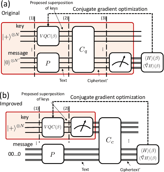 Abstract:Here we introduce an improved approach to Variational Quantum Attack Algorithms (VQAA) on crytographic protocols. Our methods provide robust quantum attacks to well-known cryptographic algorithms, more efficiently and with remarkably fewer qubits than previous approaches. We implement simulations of our attacks for symmetric-key protocols such as S-DES, S-AES and Blowfish. For instance, we show how our attack allows a classical simulation of a small 8-qubit quantum computer to find the secret key of one 32-bit Blowfish instance with 24 times fewer number of iterations than a brute-force attack. Our work also shows improvements in attack success rates for lightweight ciphers such as S-DES and S-AES. Further applications beyond symmetric-key cryptography are also discussed, including asymmetric-key protocols and hash functions. In addition, we also comment on potential future improvements of our methods. Our results bring one step closer assessing the vulnerability of large-size classical cryptographic protocols with Noisy Intermediate-Scale Quantum (NISQ) devices, and set the stage for future research in quantum cybersecurity.