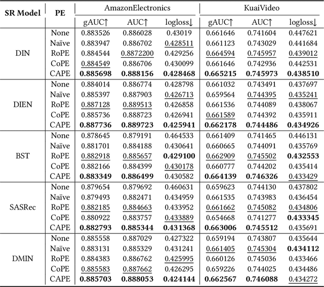 Abstract:Sequential recommendation (SR), which encodes user activity to predict the next action, has emerged as a widely adopted strategy in developing commercial personalized recommendation systems. A critical component of modern SR models is the attention mechanism, which synthesizes users' historical activities. This mechanism is typically order-invariant and generally relies on position encoding (PE). Conventional SR models simply assign a learnable vector to each position, resulting in only modest gains compared to traditional recommendation models. Moreover, limited research has been conducted on position encoding tailored for sequential recommendation, leaving a significant gap in addressing its unique requirements. To bridge this gap, we propose a novel Contextual-Aware Position Encoding method for sequential recommendation, abbreviated as CAPE. To the best of our knowledge, CAPE is the first PE method specifically designed for sequential recommendation. Comprehensive experiments conducted on benchmark SR datasets demonstrate that CAPE consistently enhances multiple mainstream backbone models and achieves state-of-the-art performance, across small and large scale model size. Furthermore, we deployed CAPE in an industrial setting on a real-world commercial platform, clearly showcasing the effectiveness of our approach. Our source code is available at https://github.com/yjdy/CAPE.