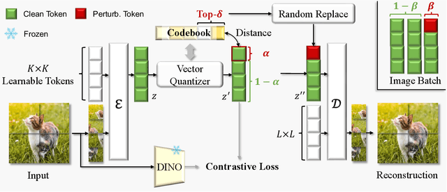 Abstract:Recent image generative models typically capture the image distribution in a pre-constructed latent space, relying on a frozen image tokenizer. However, there exists a significant discrepancy between the reconstruction and generation distribution, where current tokenizers only prioritize the reconstruction task that happens before generative training without considering the generation errors during sampling. In this paper, we comprehensively analyze the reason for this discrepancy in a discrete latent space, and, from which, we propose a novel tokenizer training scheme including both main-training and post-training, focusing on improving latent space construction and decoding respectively. During the main training, a latent perturbation strategy is proposed to simulate sampling noises, \ie, the unexpected tokens generated in generative inference. Specifically, we propose a plug-and-play tokenizer training scheme, which significantly enhances the robustness of tokenizer, thus boosting the generation quality and convergence speed, and a novel tokenizer evaluation metric, \ie, pFID, which successfully correlates the tokenizer performance to generation quality. During post-training, we further optimize the tokenizer decoder regarding a well-trained generative model to mitigate the distribution difference between generated and reconstructed tokens. With a $\sim$400M generator, a discrete tokenizer trained with our proposed main training achieves a notable 1.60 gFID and further obtains 1.36 gFID with the additional post-training. Further experiments are conducted to broadly validate the effectiveness of our post-training strategy on off-the-shelf discrete and continuous tokenizers, coupled with autoregressive and diffusion-based generators.