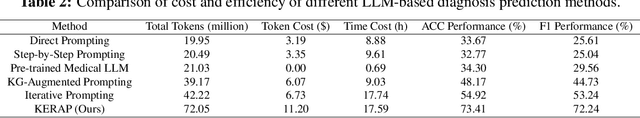 Abstract:Medical diagnosis prediction plays a critical role in disease detection and personalized healthcare. While machine learning (ML) models have been widely adopted for this task, their reliance on supervised training limits their ability to generalize to unseen cases, particularly given the high cost of acquiring large, labeled datasets. Large language models (LLMs) have shown promise in leveraging language abilities and biomedical knowledge for diagnosis prediction. However, they often suffer from hallucinations, lack structured medical reasoning, and produce useless outputs. To address these challenges, we propose KERAP, a knowledge graph (KG)-enhanced reasoning approach that improves LLM-based diagnosis prediction through a multi-agent architecture. Our framework consists of a linkage agent for attribute mapping, a retrieval agent for structured knowledge extraction, and a prediction agent that iteratively refines diagnosis predictions. Experimental results demonstrate that KERAP enhances diagnostic reliability efficiently, offering a scalable and interpretable solution for zero-shot medical diagnosis prediction.