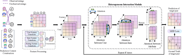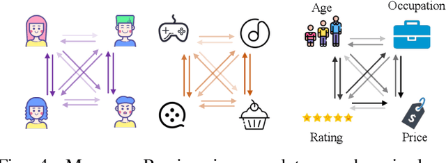 Abstract:Cold-start rating prediction is a fundamental problem in recommender systems that has been extensively studied. Many methods have been proposed that exploit explicit relations among existing data, such as collaborative filtering, social recommendations and heterogeneous information network, to alleviate the data insufficiency issue for cold-start users and items. However, the explicit relations constructed based on data between different roles may be unreliable and irrelevant, which limits the performance ceiling of the specific recommendation task. Motivated by this, in this paper, we propose a flexible framework dubbed heterogeneous interaction rating network (HIRE). HIRE dose not solely rely on the pre-defined interaction pattern or the manually constructed heterogeneous information network. Instead, we devise a Heterogeneous Interaction Module (HIM) to jointly model the heterogeneous interactions and directly infer the important interactions via the observed data. In the experiments, we evaluate our model under three cold-start settings on three real-world datasets. The experimental results show that HIRE outperforms other baselines by a large margin. Furthermore, we visualize the inferred interactions of HIRE to confirm the contribution of our model.