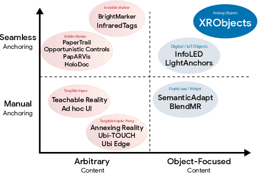 Abstract:Seamless integration of physical objects as interactive digital entities remains a challenge for spatial computing. This paper introduces Augmented Object Intelligence (AOI), a novel XR interaction paradigm designed to blur the lines between digital and physical by equipping real-world objects with the ability to interact as if they were digital, where every object has the potential to serve as a portal to vast digital functionalities. Our approach utilizes object segmentation and classification, combined with the power of Multimodal Large Language Models (MLLMs), to facilitate these interactions. We implement the AOI concept in the form of XR-Objects, an open-source prototype system that provides a platform for users to engage with their physical environment in rich and contextually relevant ways. This system enables analog objects to not only convey information but also to initiate digital actions, such as querying for details or executing tasks. Our contributions are threefold: (1) we define the AOI concept and detail its advantages over traditional AI assistants, (2) detail the XR-Objects system's open-source design and implementation, and (3) show its versatility through a variety of use cases and a user study.