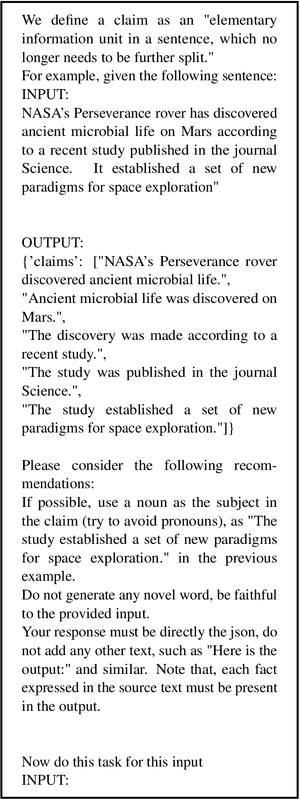 Abstract:Recent advancements in text summarization, particularly with the advent of Large Language Models (LLMs), have shown remarkable performance. However, a notable challenge persists as a substantial number of automatically-generated summaries exhibit factual inconsistencies, such as hallucinations. In response to this issue, various approaches for the evaluation of consistency for summarization have emerged. Yet, these newly-introduced metrics face several limitations, including lack of interpretability, focus on short document summaries (e.g., news articles), and computational impracticality, especially for LLM-based metrics. To address these shortcomings, we propose Factuality Evaluation of summarization based on Natural language Inference and Claim Extraction (FENICE), a more interpretable and efficient factuality-oriented metric. FENICE leverages an NLI-based alignment between information in the source document and a set of atomic facts, referred to as claims, extracted from the summary. Our metric sets a new state of the art on AGGREFACT, the de-facto benchmark for factuality evaluation. Moreover, we extend our evaluation to a more challenging setting by conducting a human annotation process of long-form summarization.