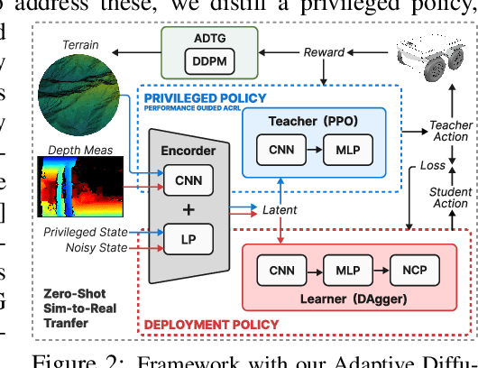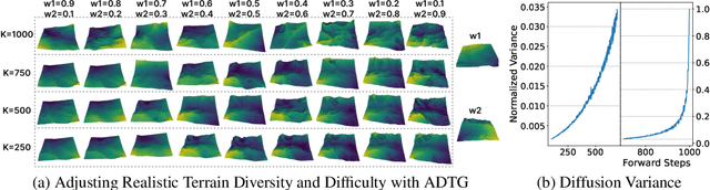 Abstract:Model-free reinforcement learning has emerged as a powerful method for developing robust robot control policies capable of navigating through complex and unstructured terrains. The effectiveness of these methods hinges on two essential elements: (1) the use of massively parallel physics simulations to expedite policy training, and (2) an environment generator tasked with crafting sufficiently challenging yet attainable terrains to facilitate continuous policy improvement. Existing methods of environment generation often rely on heuristics constrained by a set of parameters, limiting the diversity and realism. In this work, we introduce the Adaptive Diffusion Terrain Generator (ADTG), a novel method that leverages Denoising Diffusion Probabilistic Models to dynamically expand existing training environments by adding more diverse and complex terrains adaptive to the current policy. ADTG guides the diffusion model's generation process through initial noise optimization, blending noise-corrupted terrains from existing training environments weighted by the policy's performance in each corresponding environment. By manipulating the noise corruption level, ADTG seamlessly transitions between generating similar terrains for policy fine-tuning and novel ones to expand training diversity. Our experiments show that the policy trained by ADTG outperforms both procedural generated and natural environments, along with popular navigation methods.