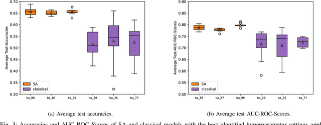 Abstract:Quantum computing offers the potential for superior computational capabilities, particularly for data-intensive tasks. However, the current state of quantum hardware puts heavy restrictions on input size. To address this, hybrid transfer learning solutions have been developed, merging pre-trained classical models, capable of handling extensive inputs, with variational quantum circuits. Yet, it remains unclear how much each component - classical and quantum - contributes to the model's results. We propose a novel hybrid architecture: instead of utilizing a pre-trained network for compression, we employ an autoencoder to derive a compressed version of the input data. This compressed data is then channeled through the encoder part of the autoencoder to the quantum component. We assess our model's classification capabilities against two state-of-the-art hybrid transfer learning architectures, two purely classical architectures and one quantum architecture. Their accuracy is compared across four datasets: Banknote Authentication, Breast Cancer Wisconsin, MNIST digits, and AudioMNIST. Our research suggests that classical components significantly influence classification in hybrid transfer learning, a contribution often mistakenly ascribed to the quantum element. The performance of our model aligns with that of a variational quantum circuit using amplitude embedding, positioning it as a feasible alternative.