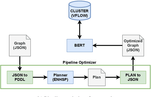 Abstract:Data pipeline frameworks provide abstractions for implementing sequences of data-intensive transformation operators, automating the deployment and execution of such transformations in a cluster. Deploying a data pipeline, however, requires computing resources to be allocated in a data center, ideally minimizing the overhead for communicating data and executing operators in the pipeline while considering each operator's execution requirements. In this paper, we model the problem of optimal data pipeline deployment as planning with action costs, where we propose heuristics aiming to minimize total execution time. Experimental results indicate that the heuristics can outperform the baseline deployment and that a heuristic based on connections outperforms other strategies.