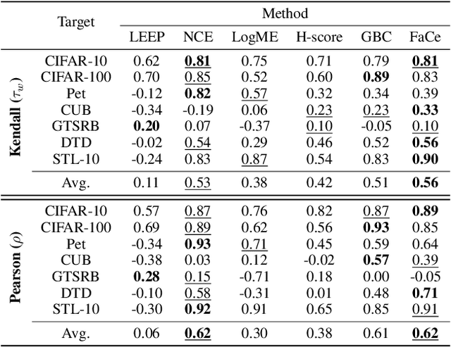 Abstract:Transferability estimation aims to provide heuristics for quantifying how suitable a pre-trained model is for a specific downstream task, without fine-tuning them all. Prior studies have revealed that well-trained models exhibit the phenomenon of Neural Collapse. Based on a widely used neural collapse metric in existing literature, we observe a strong correlation between the neural collapse of pre-trained models and their corresponding fine-tuned models. Inspired by this observation, we propose a novel method termed Fair Collapse (FaCe) for transferability estimation by comprehensively measuring the degree of neural collapse in the pre-trained model. Typically, FaCe comprises two different terms: the variance collapse term, which assesses the class separation and within-class compactness, and the class fairness term, which quantifies the fairness of the pre-trained model towards each class. We investigate FaCe on a variety of pre-trained classification models across different network architectures, source datasets, and training loss functions. Results show that FaCe yields state-of-the-art performance on different tasks including image classification, semantic segmentation, and text classification, which demonstrate the effectiveness and generalization of our method.