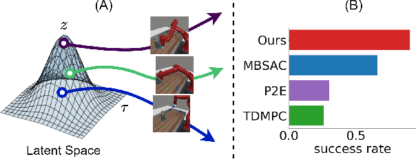 Abstract:We investigate the challenge of parametrizing policies for reinforcement learning (RL) in high-dimensional continuous action spaces. Our objective is to develop a multimodal policy that overcomes limitations inherent in the commonly-used Gaussian parameterization. To achieve this, we propose a principled framework that models the continuous RL policy as a generative model of optimal trajectories. By conditioning the policy on a latent variable, we derive a novel variational bound as the optimization objective, which promotes exploration of the environment. We then present a practical model-based RL method, called Reparameterized Policy Gradient (RPG), which leverages the multimodal policy parameterization and learned world model to achieve strong exploration capabilities and high data efficiency. Empirical results demonstrate that our method can help agents evade local optima in tasks with dense rewards and solve challenging sparse-reward environments by incorporating an object-centric intrinsic reward. Our method consistently outperforms previous approaches across a range of tasks. Code and supplementary materials are available on the project page https://haosulab.github.io/RPG/