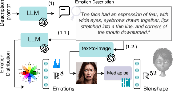 Abstract:Existing 3D facial emotion modeling have been constrained by limited emotion classes and insufficient datasets. This paper introduces "Emo3D", an extensive "Text-Image-Expression dataset" spanning a wide spectrum of human emotions, each paired with images and 3D blendshapes. Leveraging Large Language Models (LLMs), we generate a diverse array of textual descriptions, facilitating the capture of a broad spectrum of emotional expressions. Using this unique dataset, we conduct a comprehensive evaluation of language-based models' fine-tuning and vision-language models like Contranstive Language Image Pretraining (CLIP) for 3D facial expression synthesis. We also introduce a new evaluation metric for this task to more directly measure the conveyed emotion. Our new evaluation metric, Emo3D, demonstrates its superiority over Mean Squared Error (MSE) metrics in assessing visual-text alignment and semantic richness in 3D facial expressions associated with human emotions. "Emo3D" has great applications in animation design, virtual reality, and emotional human-computer interaction.