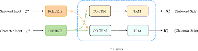 Abstract:Most pretrained language models rely on subword tokenization, which processes text as a sequence of subword tokens. However, different granularities of text, such as characters, subwords, and words, can contain different kinds of information. Previous studies have shown that incorporating multiple input granularities improves model generalization, yet very few of them outputs useful representations for each granularity. In this paper, we introduce the entanglement model, aiming to combine character and subword language models. Inspired by vision-language models, our model treats characters and subwords as separate modalities, and it generates mutually informed representations for both granularities as output. We evaluate our model on text classification, named entity recognition, and POS-tagging tasks. Notably, the entanglement model outperforms its backbone language models, particularly in the presence of noisy texts and low-resource languages. Furthermore, the entanglement model even outperforms larger pre-trained models on all English sequence labeling tasks and classification tasks. Our anonymized code is available at https://anonymous.4open.science/r/noisy-IE-A673