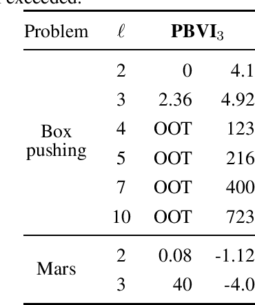Abstract:A recent method for solving zero-sum partially observable stochastic games (zs-POSGs) embeds the original game into a new one called the occupancy Markov game. This reformulation allows applying Bellman's principle of optimality to solve zs-POSGs. However, improving a current solution requires solving a linear program with exponentially many potential constraints, which significantly restricts the scalability of this approach. This paper exploits the optimal value function's novel uniform continuity properties to overcome this limitation. We first construct a new operator that is computationally more efficient than the state-of-the-art update rules without compromising optimality. In particular, improving a current solution now involves a linear program with an exponential drop in constraints. We then also show that point-based value iteration algorithms utilizing our findings improve the scalability of existing methods while maintaining guarantees in various domains.